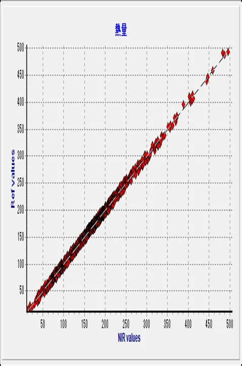 6. 別途PCへスペクトルデータを移し、検量線作成ソフトにより、煩雑な操作や複雑な操作は不要で20分程度(データ数による)の短時間で検量線ファイルを作成することができる。そのファイルをニュートリションアナライザーの本体にインストールすることで、栄養成分表示5項目の分析値を得ることができます。
