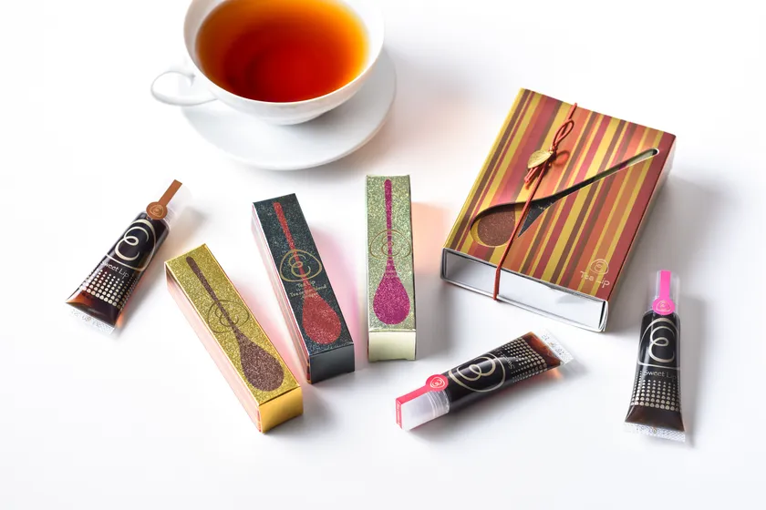 スイートリップとは、有平糖をベースにしたみつあめをチューブに入れ、グロスリップのように仕上げた商品。そのなかでも「ティーリップ」は、北欧紅茶ティーセンターオブストックホルムの「ティーセンターブレンド※1」を使用し、じっくりと抽出するところからこだわって作りました。