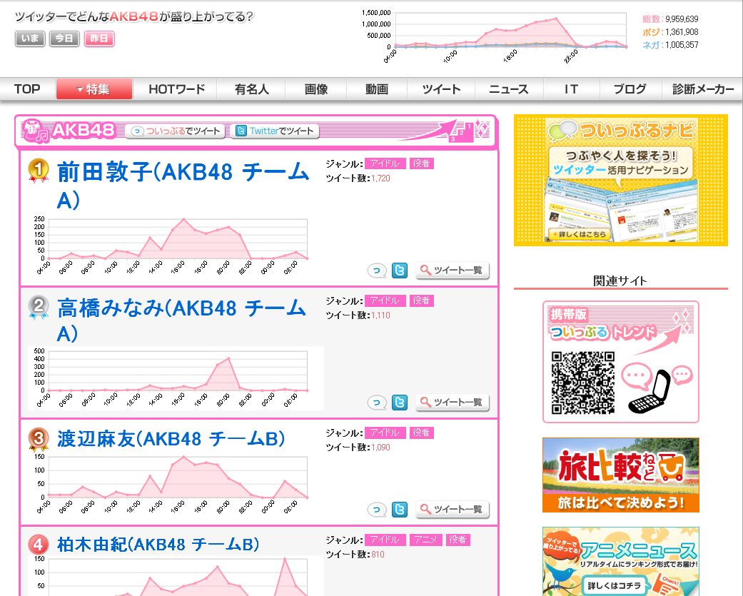 BIGLOBEのツイッター情報サイト「ついっぷるトレンド」が テーマ別ランキングを提供 ~「AKB48」「ご当地グルメ」「パワースポット」など7テーマを新設~