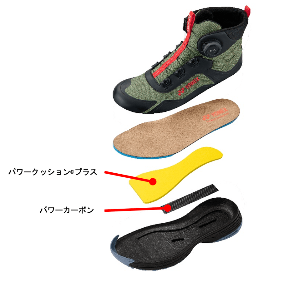 YY-GATTA(ワイワイガッタ)にはパワークッション®プラスを踏付け部から踵部に搭載。