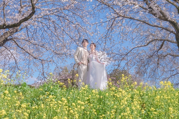 毎年2月〜3月にかけて見頃を迎える「河津桜」は、濃いピンク色の花が特徴的な早咲きの桜。春の訪れを感じる自然の中で、桜色に包まれた特別なウェディングフォトをお楽しみいただけます。