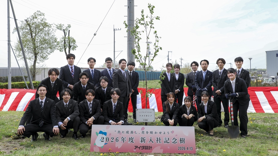 株式会社アイダ設計(本社:埼玉県上尾市、代表取締役社長:會田 貞光)は、2026年4月13日(月)、当社プレカット工場にて、2026年4月入社の新入社員による記念植樹会および工場見学を実施しました。