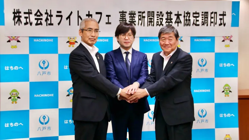 AI雇用創出と人材育成による、地域活性化を目指して ライトカフェ、青森県及び八戸市と事業所開設基本協定を締結
