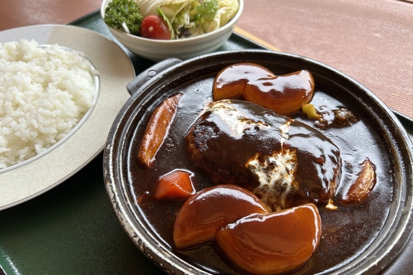 レストラン洋燈の特別フェアメニューは、塩原高原大根を使った「塩原高原大根とハンバーグの陶板仕立て」。