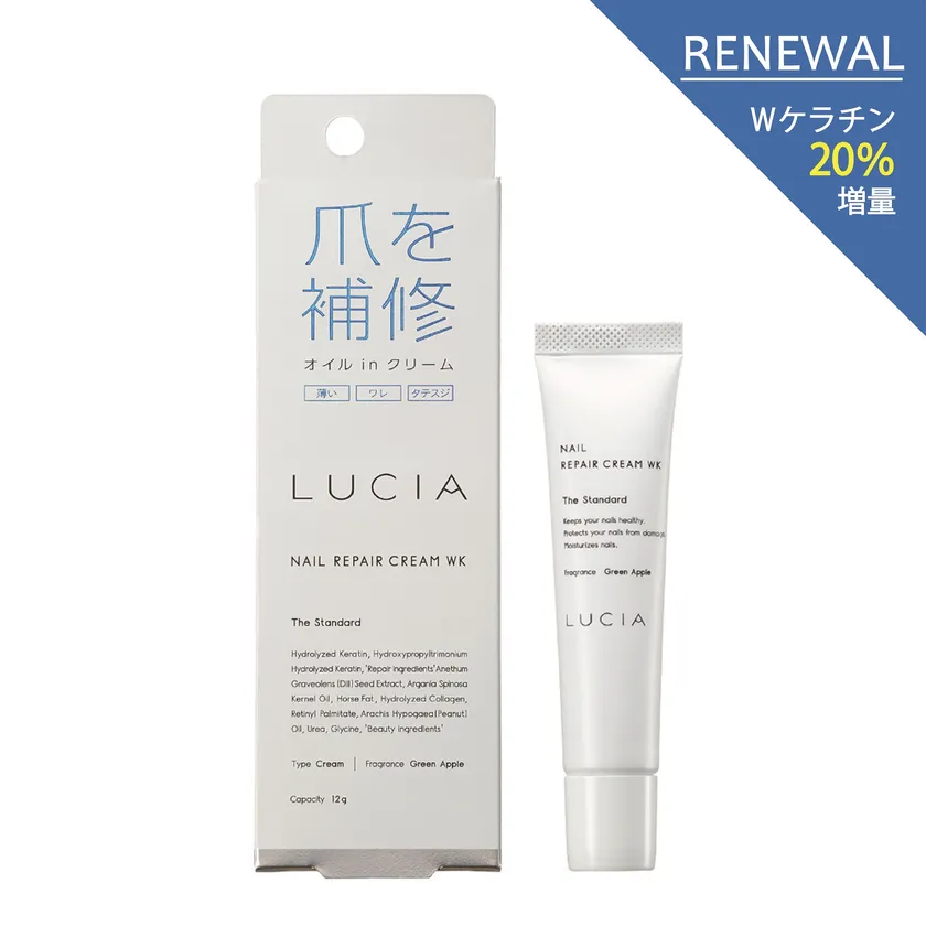 爪の主成分はたんぱく質の一種であるケラチンでできており、健康な爪に必要な成分です。「ルシャ ネイルリペアクリームWK」は2種のケラチンを高配合。爪の奥深くまで浸透する【浸透型ケラチン】が爪に浸透したのち、爪に密着して水に強い【密着型ケラチン】が爪の表面をコーティングして保護します。