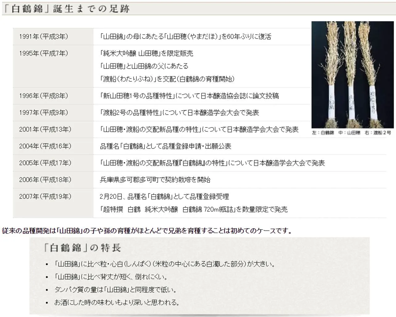 (※1)白鶴独自開発の酒米「白鶴錦」について