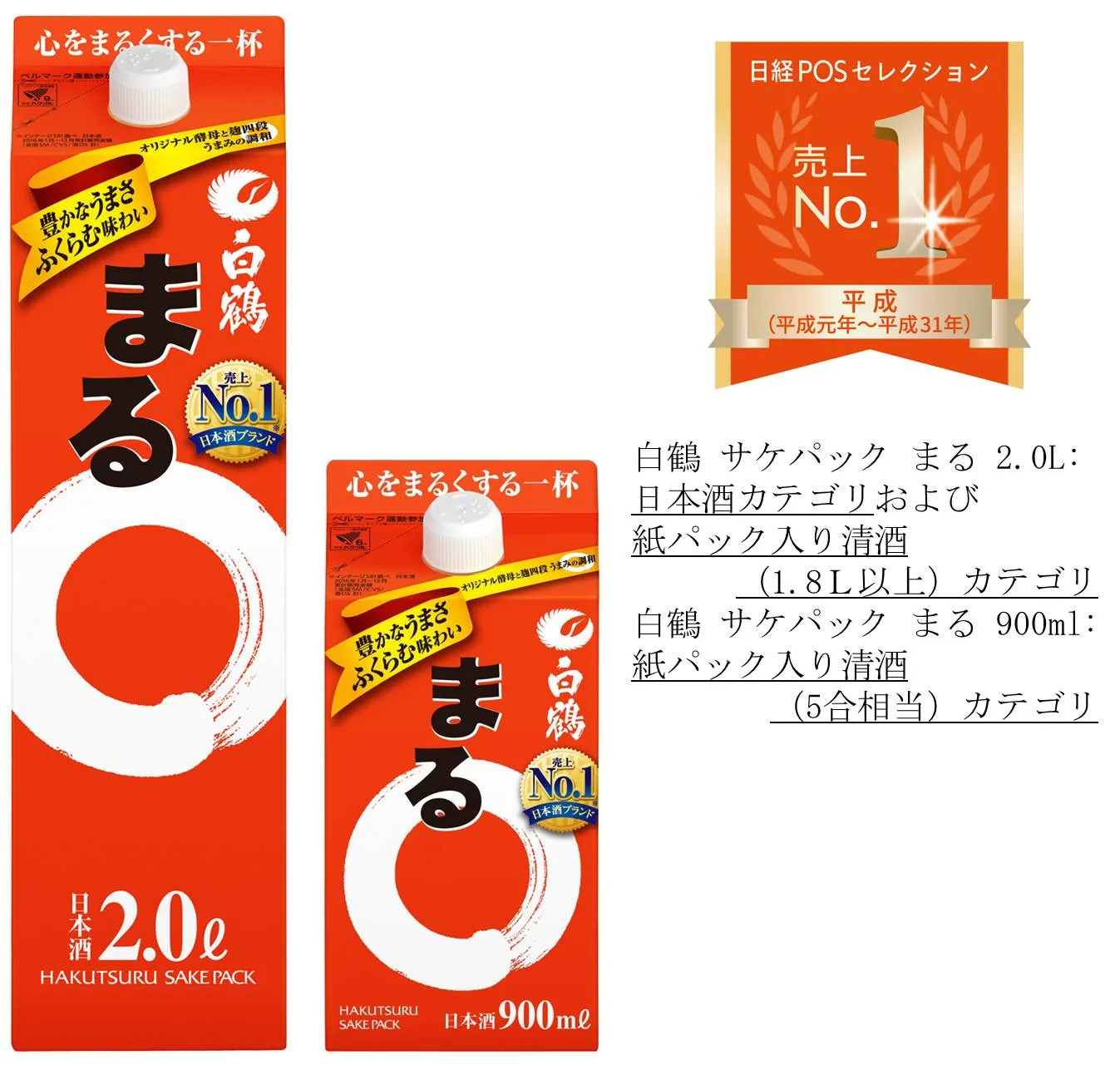 「白鶴 サケパック まる 900ml、2L」が 日経POSセレクションで「平成売上NO.1」に決定