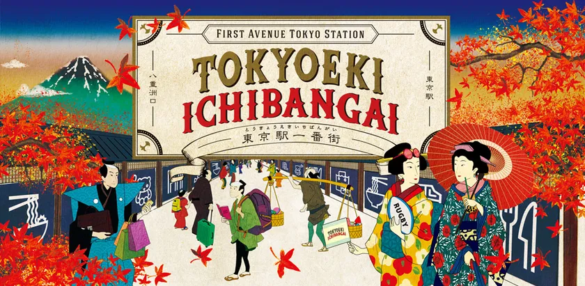 開催期間中、日本の秋をテーマにした装飾で「東京駅一番街」を彩ります。和の雰囲気で演出する浮世絵風イラストと紅葉のデコレーションで東京駅にて日本の秋を感じていただける装飾をぜひご覧下さい。