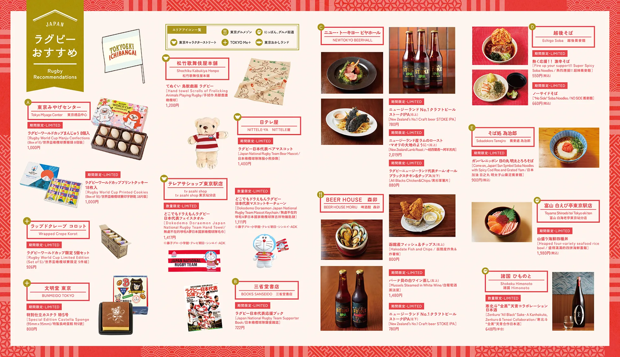 東京駅八重洲側に広がる商業施設「東京駅一番街」(運営:東京ステーション開発株式会社)」では、ラグビーを楽しめるおすすめ商品の展開や、お得なグルメクーポンを提供します。