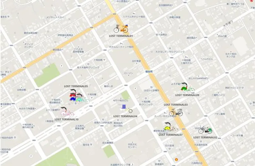 主催者や来場者の安全・安心のために、アート作品であるベチャの位置情報をAzure上に収集・分析、地図上に表示することで、貸し出したベチャの位置を館内の管理センターからリアルタイムに把握。また、アート作品が貸し出しエリア外に出た時に、アラートを通知することで紛失や予期せぬ事故を防止します。