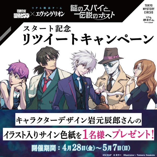 合同会社TOKYO MYSTERY CIRCUS(所在地:東京都新宿区、代表社員:加藤隆生)が運営する、世界一謎があるテーマパーク「TOKYO MYSTERY CIRCUS(以下、東京ミステリーサーカス)」は、本日4月28日(金)より開催するリアル脱出ゲーム 歌舞伎町探偵セブン×エヴァンゲリオン 『謎のスパイと伝説のホスト』のスタートを記念したキャンペーンを発表いたします。