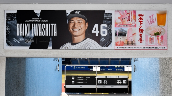 「岩下の新生姜」ウェルカムアドボードを、内野3塁側フロア2・209通路に掲出。岩下大輝投手と並んでいますので、ZOZOマリンスタジアムにお越しの際は是非ご覧ください。