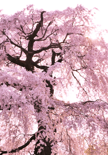 昼には、大きく伸ばした枝を美しい色の花が彩り、夜にはライトアップされ荘厳な夜桜の光景へと移ろいを見せながら、京都ならではの姿を映し出してくれます。