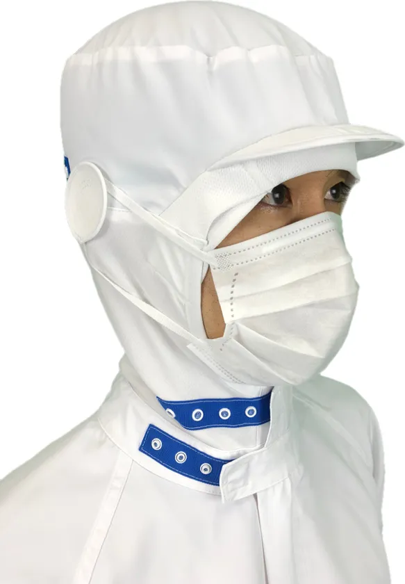 開発にあたっては、どの着用者にもフィットできる帽子を企画するのに最も時間を要しました。何度も試作を繰り返し、違和感無く最小限のスナップボタンで調整できる仕様にすることができました。洗濯の際に破損し難いセミオートファスナーや、生地端の糸くずを出さない巻き縫い仕様など食品製造業へ提案するレンタル商品としての品質を追求し、全ての自社商品は50回以上の工業洗濯を耐えた商品で且つ摩擦堅牢度5級(最上級)の生地のみを採用いたしました。また、軽量で吸汗速乾素材の採用やお腹周り、袖口にはインナーを設け、HACCP対応などの工夫を随所に設けているのも特徴です。