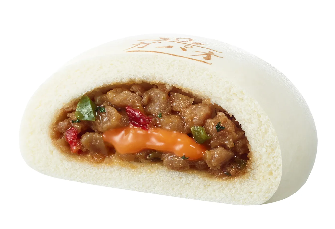 ●商品特長 : ナンプラーとオイスターソースの旨み、バジルの爽やかな風味、唐辛子の辛さが特長のガパオを包み、中からは卵黄ソースがとろ~りと出てくる見た目にも楽しめるインパクトのある中華まんです。
