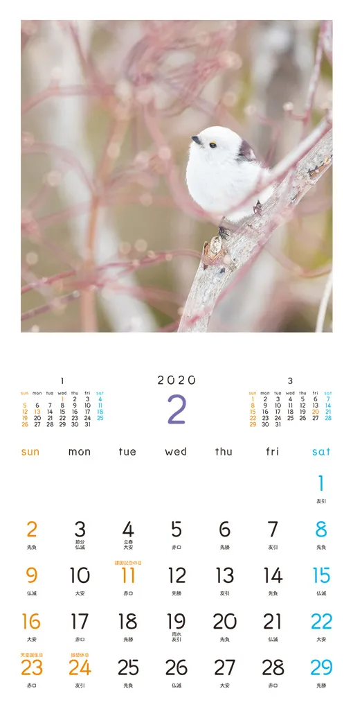 小さくてモフモフ!毎年大好評のシマエナガのカレンダーが今年はミニ壁掛けサイズで登場。
