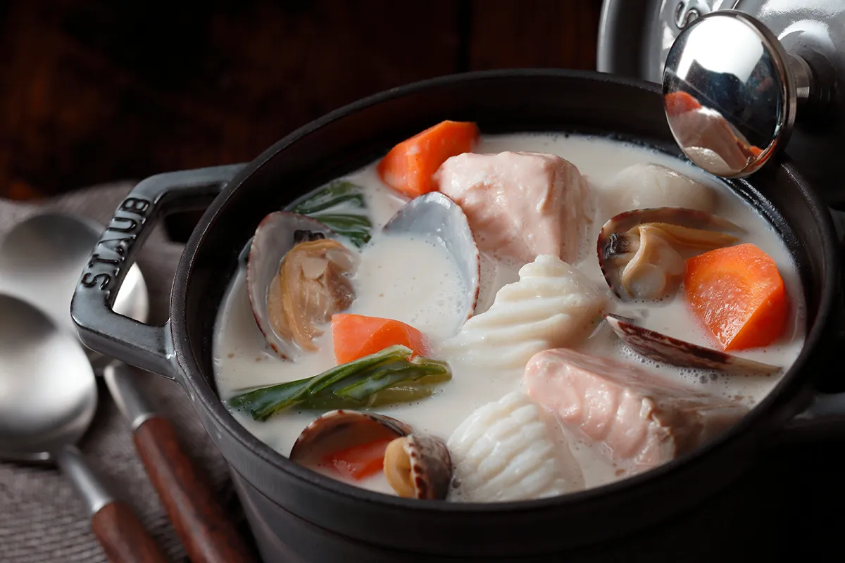 サーモンの酒粕クラムチャウダー