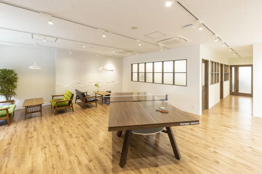 弊社が展開するモバイルアプリプラットフォーム「EAP」の事業成長による人員増に対応するため、オフィスを移転しました。移転先オフィスの延床面積は292.79平方メートル。これまでのオフィスでは分散していた従業員の就業スペースをワンフロアへと集約しました。また、休憩やミーティングなどに使うオープンスペースには卓球台を配置。このスペースは、社内外のイベントスペースとしても今後活用していく予定です。