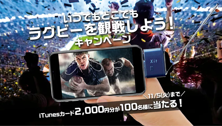 デジタル機器を通じて新しい生活を提案していく株式会社ピクセラ(本社:大阪府大阪市、代表取締役社長:藤岡 浩、以下 当社)は、Lightning接続 テレビチューナー Xit Stick(サイト スティック) XIT-STK200をお買い求めいただき、お申し込みいただくと抽選でiTunesカード2,000円分が100名様に当たる“いつでもどこでもラグビーを観戦しよう!キャンペーン!”を2019年11月5日(火) 9:59まで開催いたします。