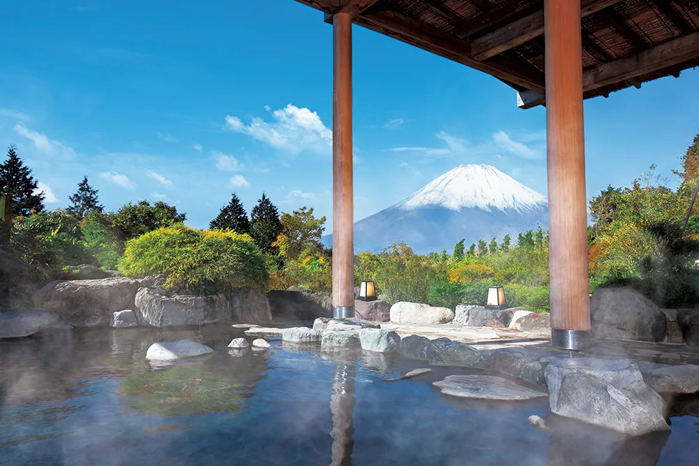 箱根仙石原の高台に位置しており、露天風呂からは男女共に湯船に浸かりながら富士山の絶景を望むロケーションです。箱根十七湯のひとつに数えられる仙石原温泉を自家源泉で存分にご堪能いただけます。