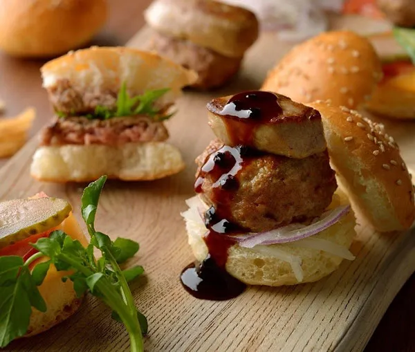肉汁がほとばしる牛肉パテとフォアグラソテーをバーガーに。芳醇なトリュフソースでより上品に。