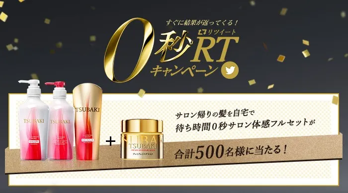 TSUBAKIの公式アカウントをフォローし、キャンペーンツイートをRTすると、「サロン帰りの髪を自宅で 待ち時間0秒サロン体感フルセット」※ が合計500名様にあたるキャンペーンを実施中です。