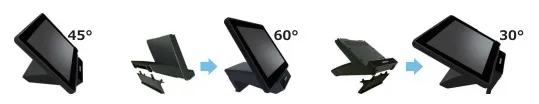 専用ドックはタブレットの画面角度を調整することができ、ドックへの設置時の角度45度からアジャスターを付けることで30度・60度に角度を変更することが可能です。