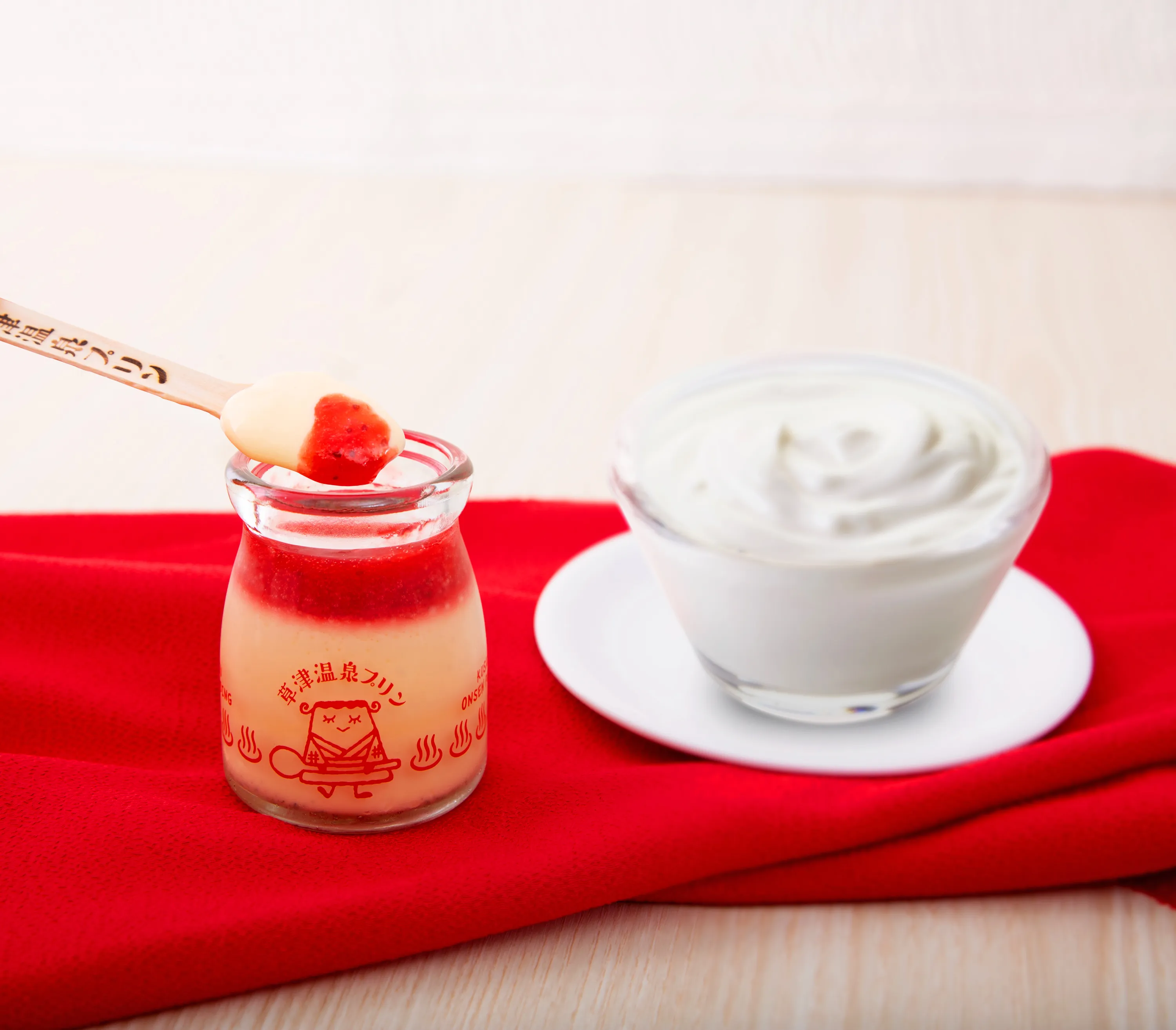 さらに温泉地ならではの仕掛けとして、店頭では蒸篭も設置しており、今後は蒸篭で蒸したプリンなども販売できるよう準備を進めています。草津温泉に旅行に来られた方が温泉や食べ物を楽しむだけでなく、その思い出もしっかりと残せるように、スプーンは湯もみに使われるような木のスプーンを採用し、店頭にはフォトスポットもご用意しています。