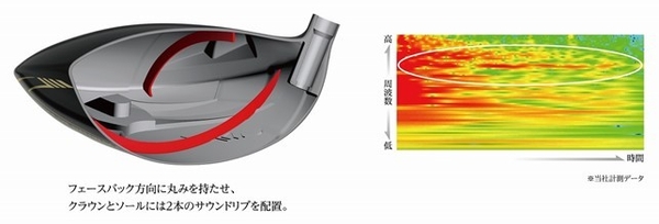 デジタルシミュレーションによりサウンドを徹底解析した「サウンドリブ設計」により、オフセンターショットでもさらに心地良い打球音を実現します。