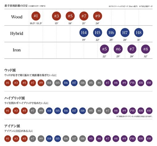 番手ごとに飛距離差を正確に出せるロフト体系と豊富なラインアップにより、多彩なセッティングが可能です。