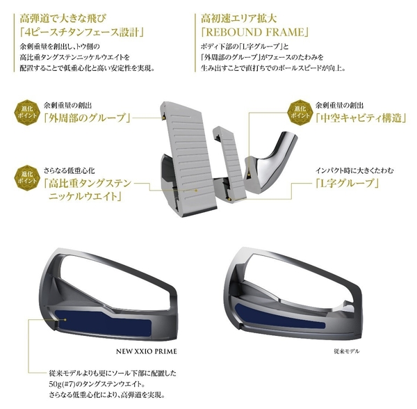 ・4ピースチタンフェース設計による徹底した低重心化と、「REBOUND FRAME」により、さらなる高初速を実現