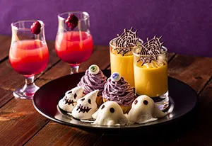 ◇ハロウィンウェルカムドリンク(画像左奥)もセットに含まれます。
