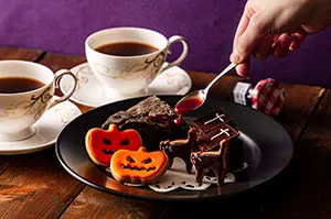 ハロウィンらしい楽しげなスイーツと軽食、ドリンクとスープもセットでご用意しました。