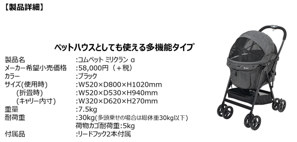 ベビー用品・乳幼児玩具などの開発・製造・販売を行うコンビ株式会社は、ペットのためのブランド「コムペット(compet)」から、いろいろな場所にワンちゃんとお出かけの夢をかなえる中型犬向けペットカート「コムペット ミリクラン α」を2019年10月上旬に発売いたします。