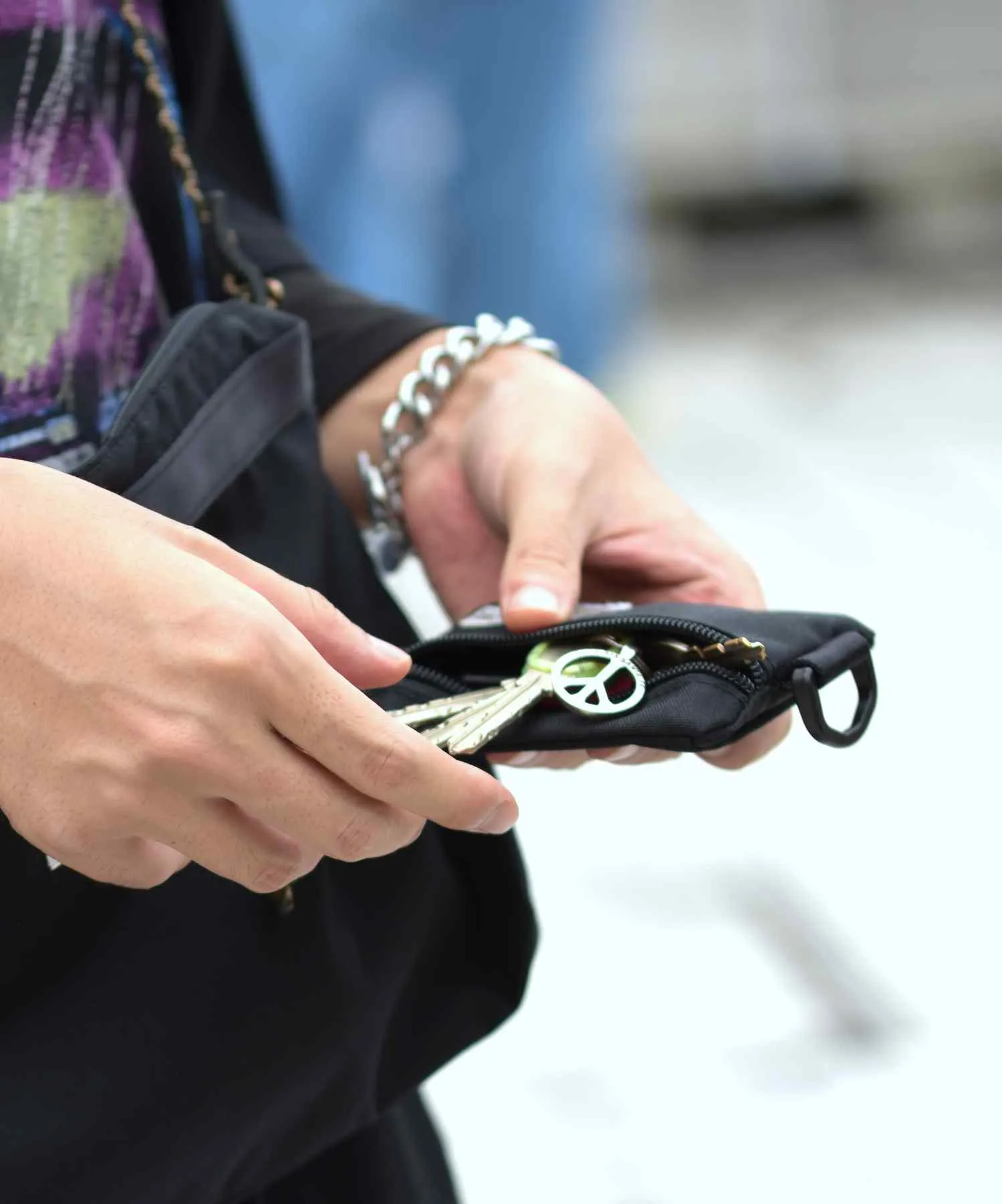 ファスナー付きの小物入れ、小銭やカードまたイヤホン、アクセサリーなどしまい忘れてしまうような小物の収納に。