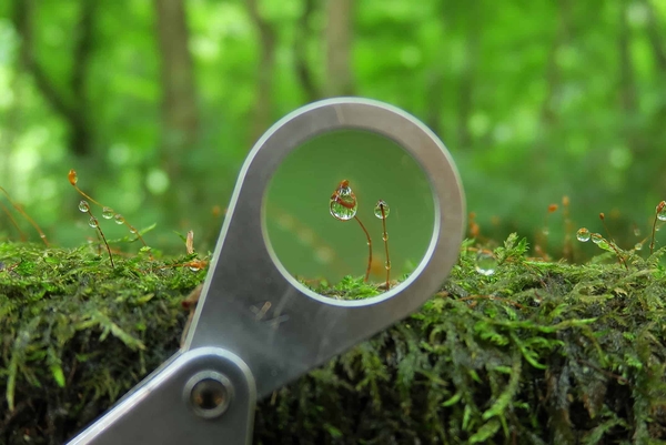 コケについて学んだあとは、ルーペを使いながら10種類のコケをすべて探し出します。日当たりや湿度などほんの少しの環境の違いで生育できる環境は異なるため、一つの岩にもさまざまなコケが生息しています。ルーペをのぞき込むと、葉っぱの細部がキラキラと輝く、肉眼ではわからない繊細な世界が広がります。コケは樹木や花などの植物を育む土台になっており、コケ観察を通して奥入瀬渓流の成り立ちや環境について、学びを深めることができます。