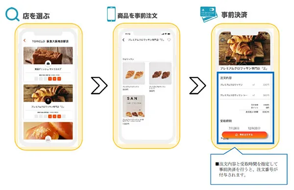 今回オープンする「TORiCLO」では、阪急阪神沿線などで店舗を展開する人気のベーカリーショップ(オープン時は12店舗)のパンを、お好きな時間にネットで購入し、その商品を通勤や通学で日常的に利用している駅にて簡単に受け取ることができ、お客様に駅での「新しい便利」を提供します。今後は、取り扱う商品をパンだけでなく、スイーツや惣菜などにも拡げて充実させていく予定です。