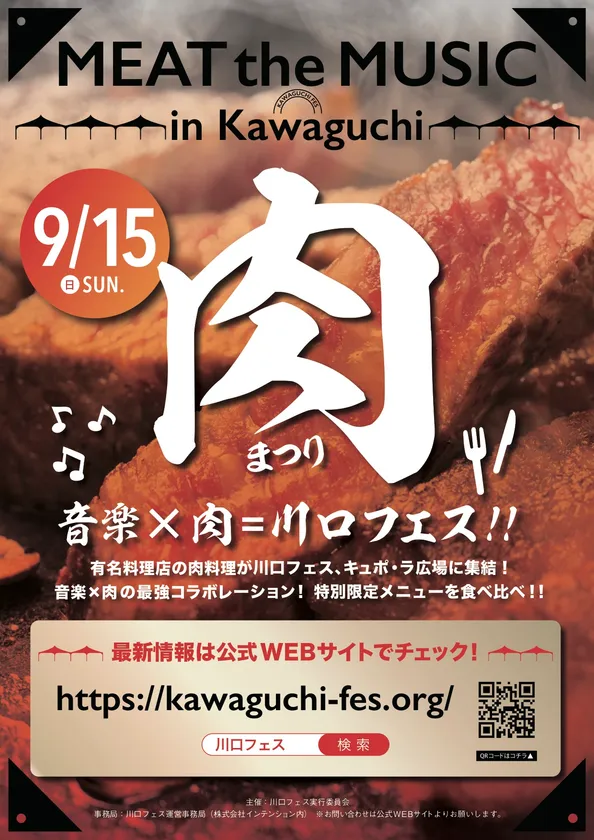 川口フェス実行委員会は、Meat the Musicをテーマとした料理を展開する「肉まつり in 川口Fes」を2019年9月15日(日)に開催いたします。
