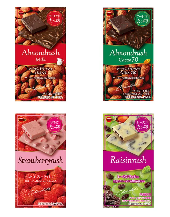 株式会社ブルボン(本社:新潟県柏崎市、代表取締役社長:吉田 康)は、素材ぎっしりで充実感のある板チョコレート「アーモンドラッシュ」シリーズ、「ストロベリーラッシュ」、「レーズンラッシュ」の4品を2019年9月17日(火)より順次リニューアルし発売いたします。