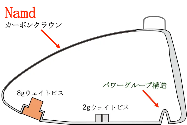 1、Namdカーボンクラウン+パワーグルーブ構造で