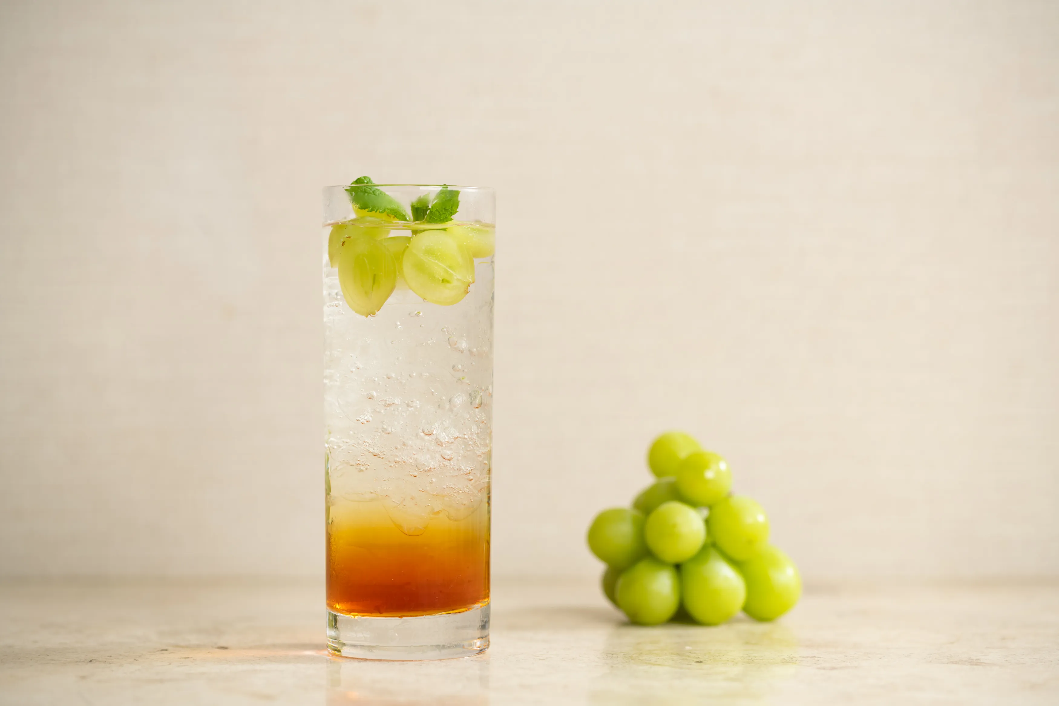 グラスに浮かべたみずみずしいシャインマスカットと共にお楽しみください。