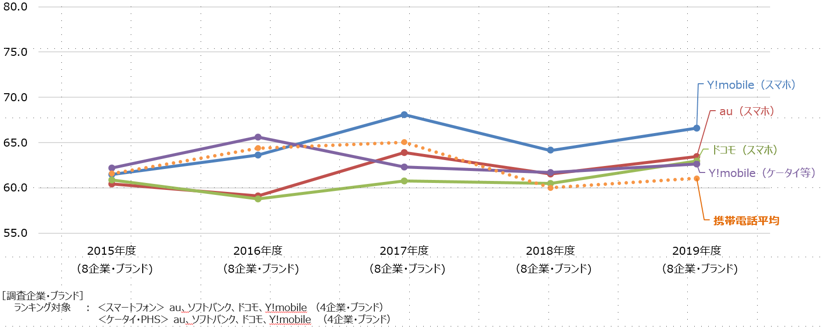 1位:Y!mobile(スマホ)(66.6)
