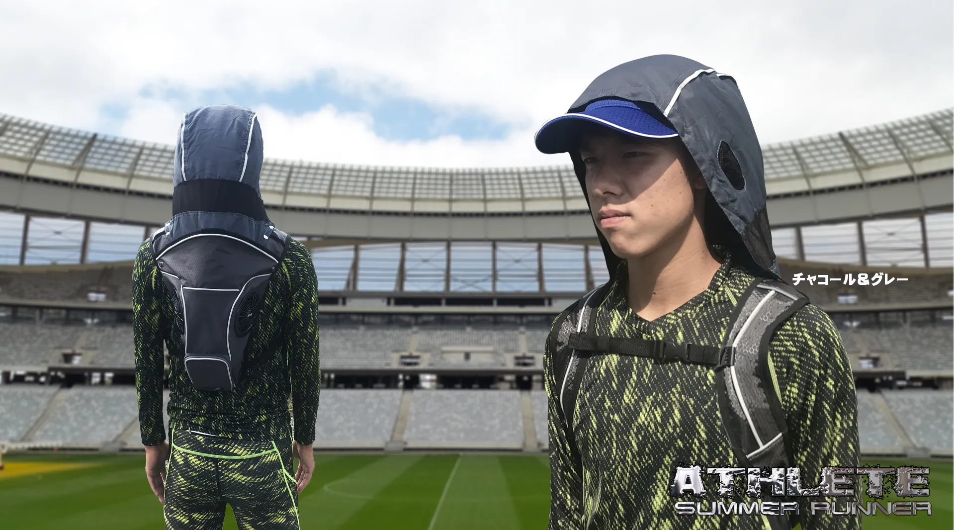 スポーツファンリュックは、本体は約648g(SUMMER RUNNER小型バッテリーセットの場合)でファンを搭載、リュック式で人体にフィットさせることができ運動時にブレが少なく動きやすい。背部から頸部、頭部にかけて空気が循環し、対流や汗の蒸発による熱放散を促進し人体を冷却する仕組み。本体の装着は約5秒、取り外しは約1秒と簡単。