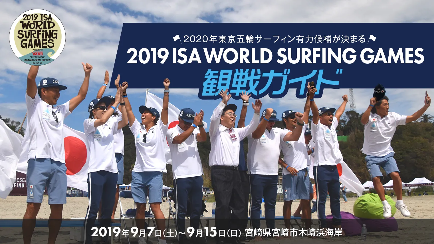 本大会は、9月7日(土)~9月15日(日)の延べ9日間、宮崎県宮崎市の木崎浜海岸で開催されます。ISA(国際サーフィン連盟)が主催する“サーフィンのワールドカップ”であり、2020年東京オリンピックの出場をかけて世界各国から多くのトップサーファーが集結します。