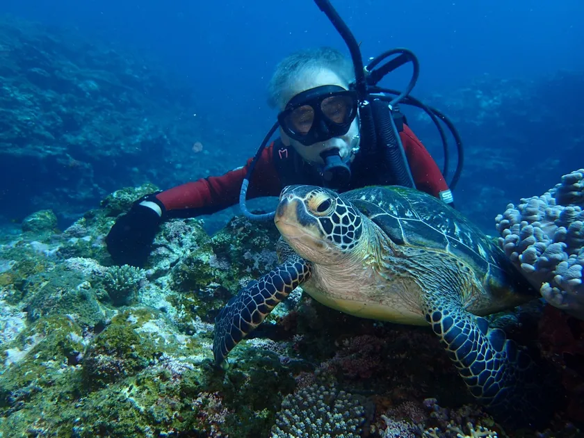 夢を叶え、ウミガメと泳ぐ伊藤さん