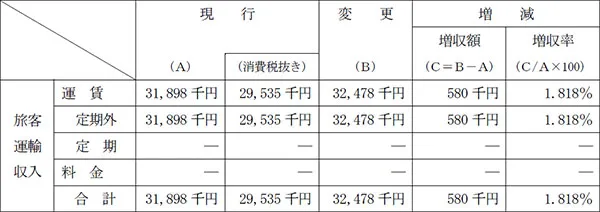 II.旅客運輸収入表(運賃及び料金の額の算出の基礎を記載した表)