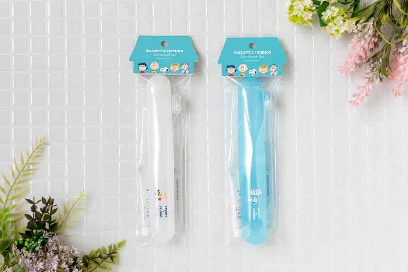 そして今回同シリーズから新たに、スヌーピーとチャーリー・ブラウンのケース付き歯ブラシセットが登場いたしました。スリムな専用ケース付きで、お仕事先や旅行先などいつでも持ち運びに便利です。