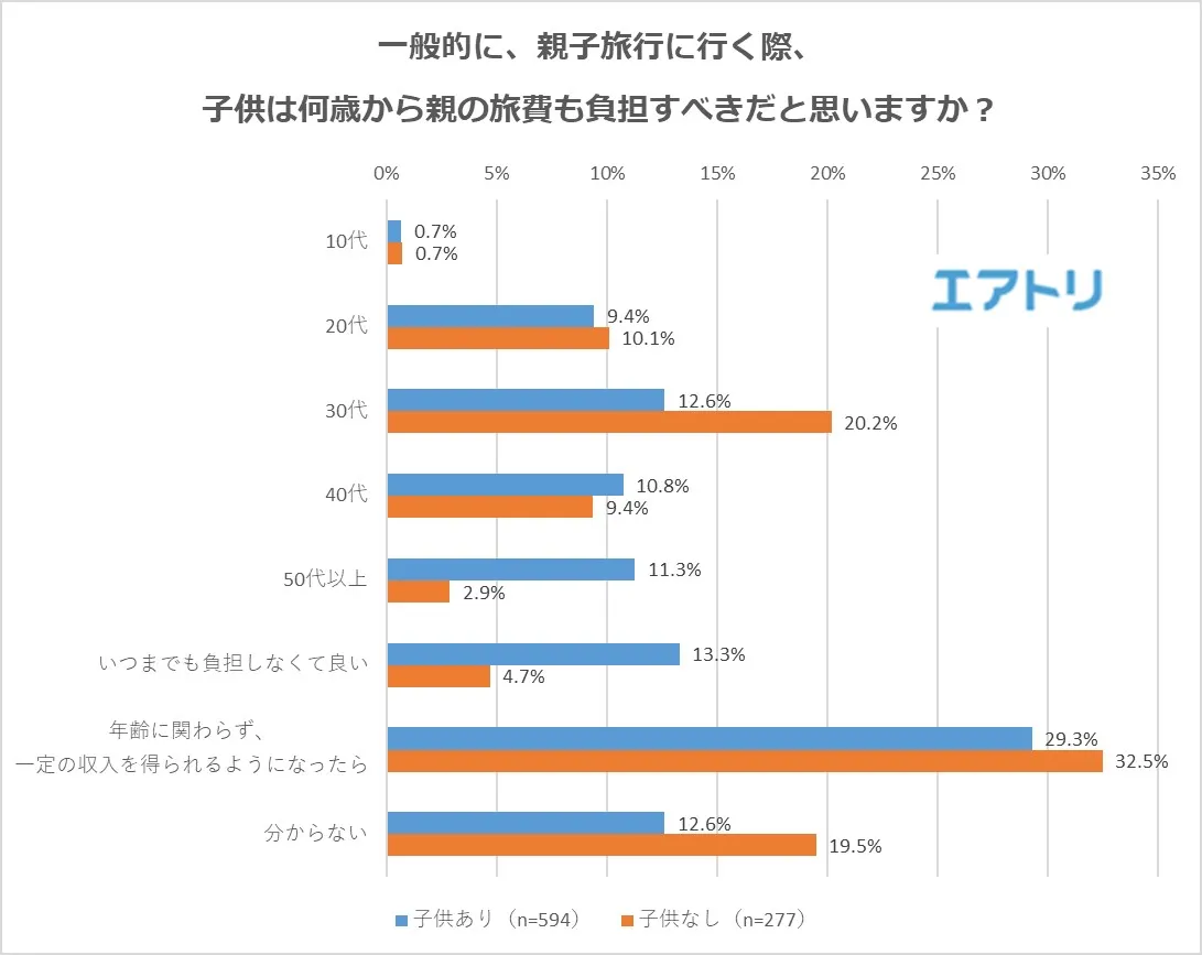 調査7:一般的に、親子旅行に行く際、子供は何歳から親の旅費も負担すべきだと思いますか?