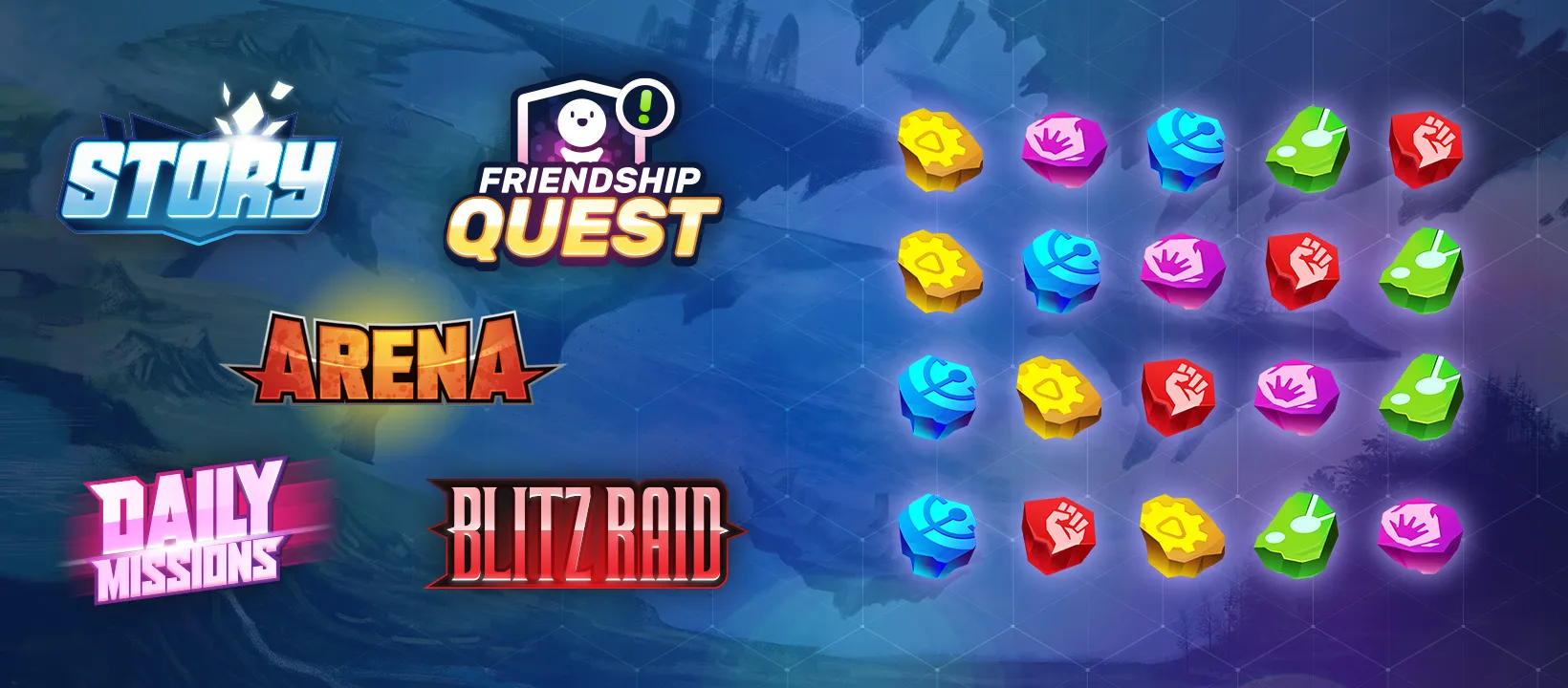 好みのキャラクターを育成、強力なチームを編成して並み居る強敵を打ち倒し、最強の座を狙え。