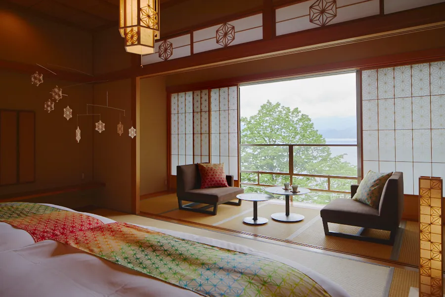 中禅寺湖の畔に位置する温泉宿、「星野リゾート 界 日光」は2019年12月1日から2020年2月29日まで、「厄払いルーム」での宿泊をはじめとした7つの厄除け体験ができる「日光厄払いステイ」プランを販売します。「厄払いルーム」は仏像の装飾などがあしらわれ、魔除けの意味がある麻の葉模様で統一した、泊まるだけで厄払いできる1室限定の客室です。照明や欄間、行灯は栃木の伝統工芸品「鹿沼組子」で作られており、その繊細さが目を楽しませます。宿泊した翌朝に、山岳信仰の聖地として名高い男体山をご神体とする二荒山神社中宮祠と、中禅寺湖の名の由来となった日光山中禅寺立木観音の両方で厄払いの祈祷をすることで、世界遺産である日光の社寺にまつわる体験ができます。